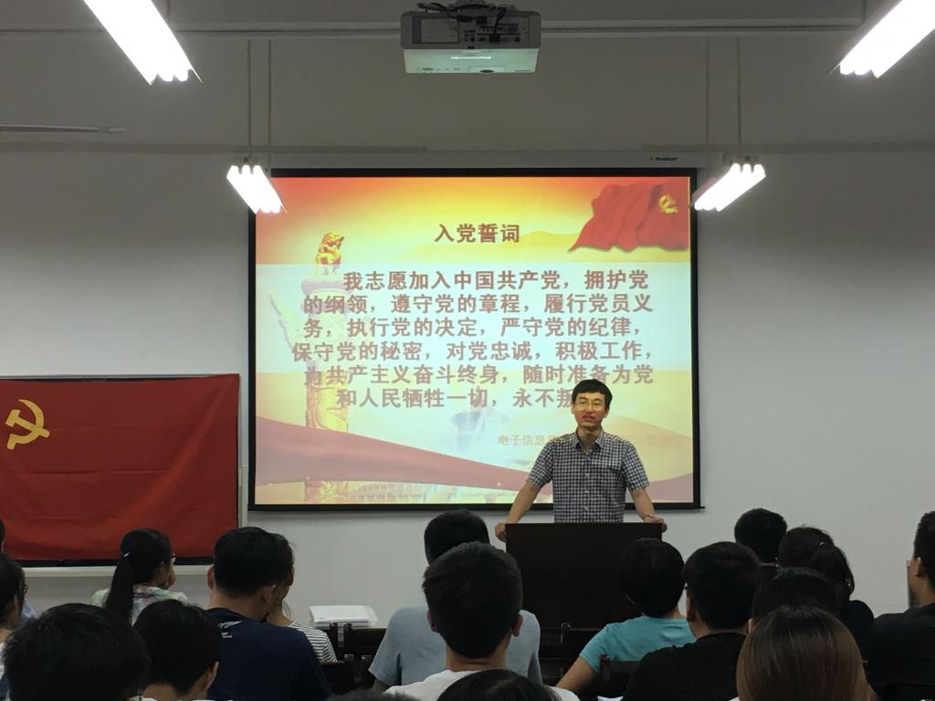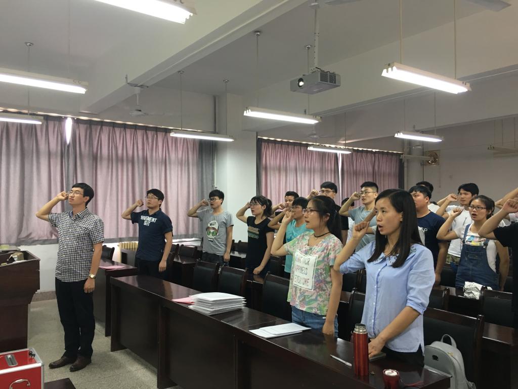 会议最后,杨建军作为领誓人带领全体党员宣读入党誓词,并对会议进行总结,表达了对新一届的党支部成员的殷切希望以及对毕业生党员的美好祝愿。