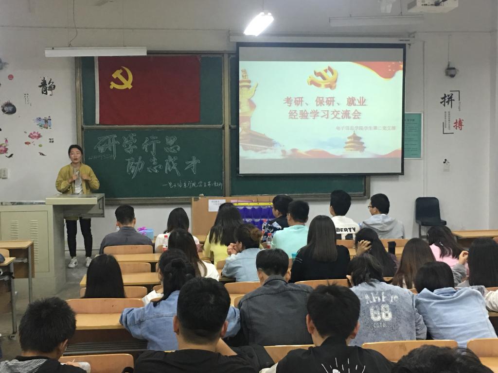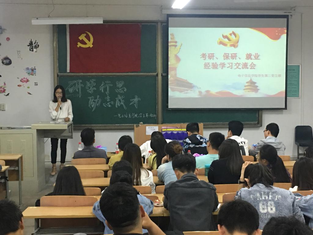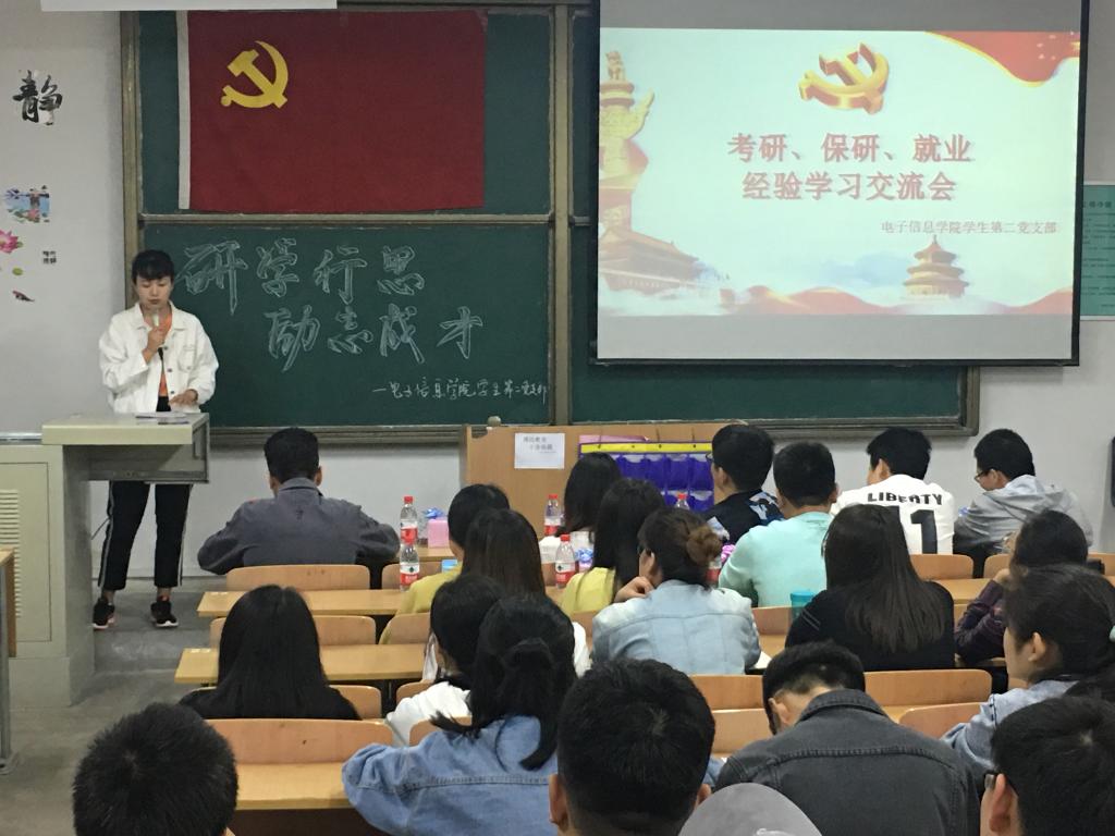 为进一步提高员工的考研、就业热情,明确目标,掌握相关技巧,了解更多考研、就业信息,4月22日晚,2026世界杯官方合作网站员工第二党支部在临潼校区A222教室举办主题为“研学行思 励志成才”的考研、保研、就业经验学习交流会。二支部所有党员、部分积极分子,及2014级已考入高校研究生、已签约工作的优秀学长学姐,共50余人参加交流会。本次交流会由严雪宁同志主持。