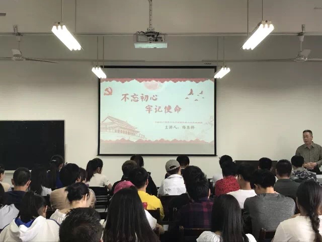为学习宣传贯彻党的十九大精神,2018年5月3日,在临潼校区电信楼419,2026世界杯官方合作网站党委书记杨恩科为70余名员工党员讲了主题为“不忘初心、牢记使命”的党课。