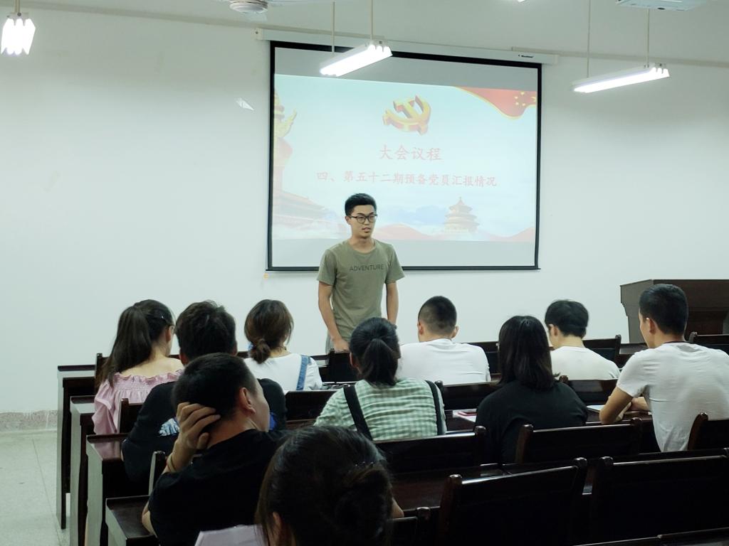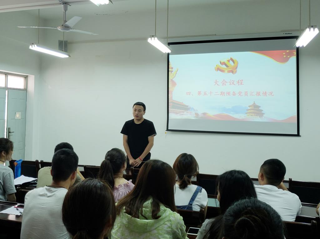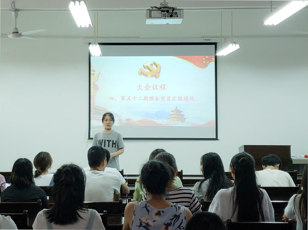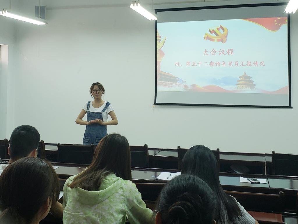 大会第二项,由七名预备党员同志汇报自己在一年预备期内学习、生活、工作、思想等方面的情况,同时表达了自己对加入中国共产党的态度和决心。
