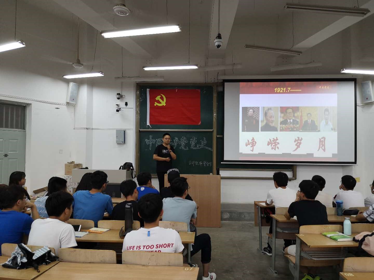 通过ppt的展示,曹智宇老师带领大家回顾了中国共产党诞生初期的艰辛,到现如今变得日益强大,这一段鼓舞人心、令人心潮澎湃的伟大经历。纵观历史长河,党的发展历程,取得的一切成就,是一代又一代中国共产党人不断奋斗的结果。他提到,作为一名即将加入党组织的积极分子,一名青年党员,更要不负这个伟大的新时代,在实现中国梦的实践中放飞青春梦想。