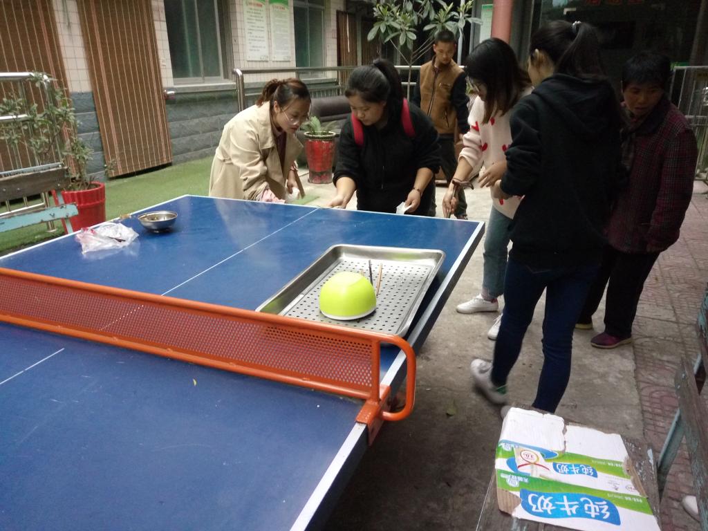 下午六时许,老人用餐毕,大家主动帮老人们收拾了餐桌,整理并清洗了餐具,一些女同志还主动和老人聊天,询问了他们的生活与健康状况,最后还与老人们进行了合影留念。