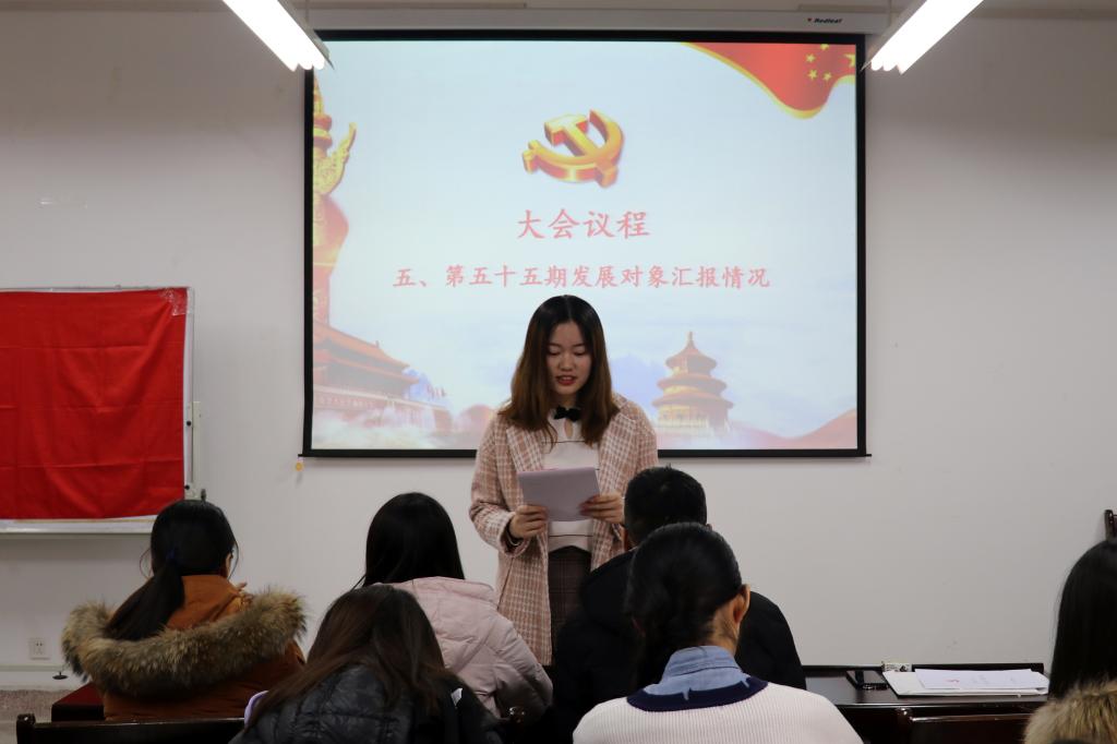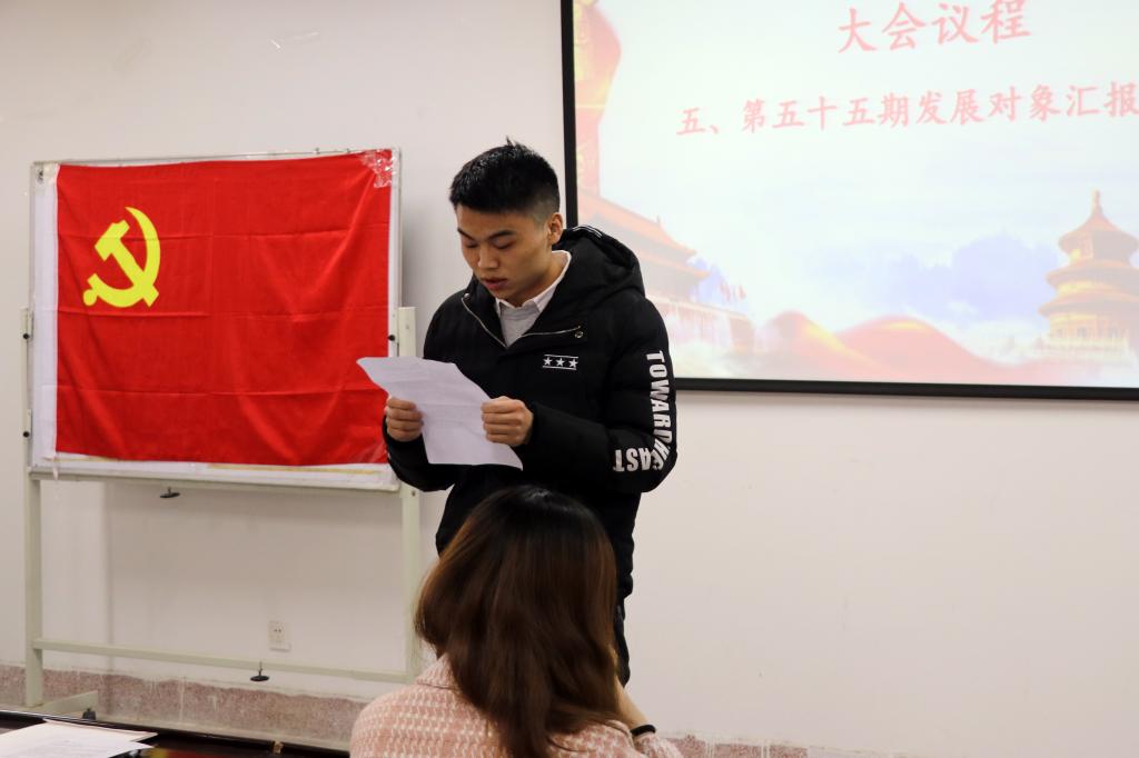 大会第二项,由四名发展对象汇报自己在一年考察期内学习、生活、工作、思想等方面的情况,同时表达了自己对加入中国共产党的态度和决心。员工党员及支委分别发表自己的意见,对大家在考察期内能够严格要求自己,积极向党组织靠拢的态度表示肯定和支持,一致认为这四名同学已经具备成为正式党员的条件。