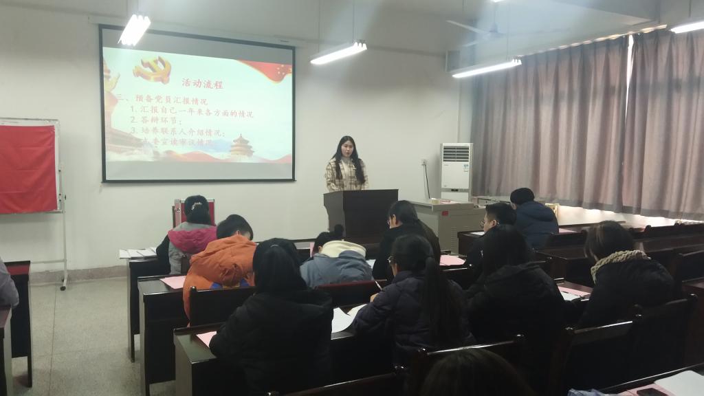 接着,召开接收预备党员大会。刘畅、曹西杰等9名发展对象依次上台宣读了入党志愿书,汇报自己对党的认识、入党动机、现实表现、本人履历以及需要向党组织说明的问题,结合自身的学习经历表明今后学习工作的态度和方向,同时也表达了自己加入党组织的决心。之后,由各位发展对象的入党介绍人分别对这几名发展对象作出总结性评价,介绍其在思想、学习、生活、工作上的优缺点,并表达了是否建议接收为预备党员的观点。对其能否入党表明态度,支部副书记肖博闻如实向支部大会报告对发展对象审查的情况,表明支委会的意见。随后,经大会投票表决,刘畅、曹西杰等9名发展对象全票通过支部大会讨论,顺利被接收为预备党员。