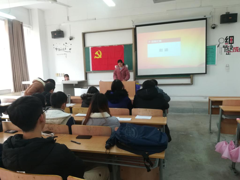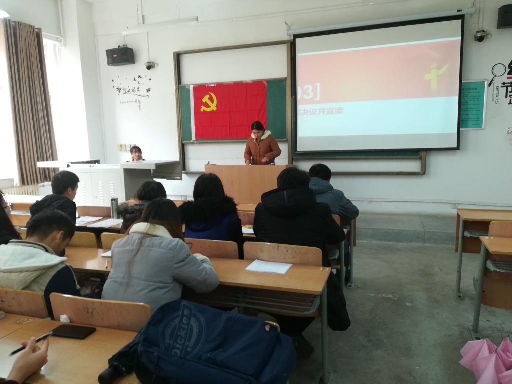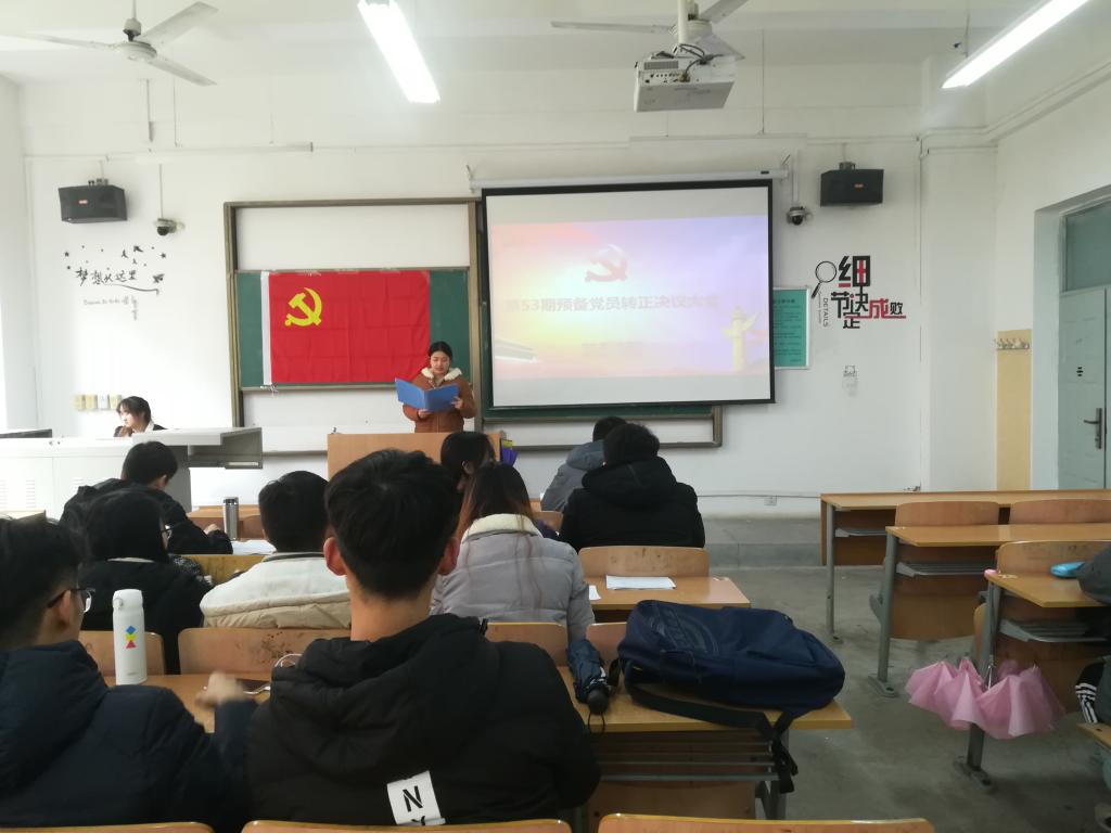 2018年12月2日中午13:00,2026世界杯官方合作网站员工第三党支部在教学楼A124召开第53期预备党员转正决议会议。党支部书记曹智宇、支部正式党员、预备党员、发展对象等29名同志出席会议,本次会议由支部副书记马小雅同志主持。