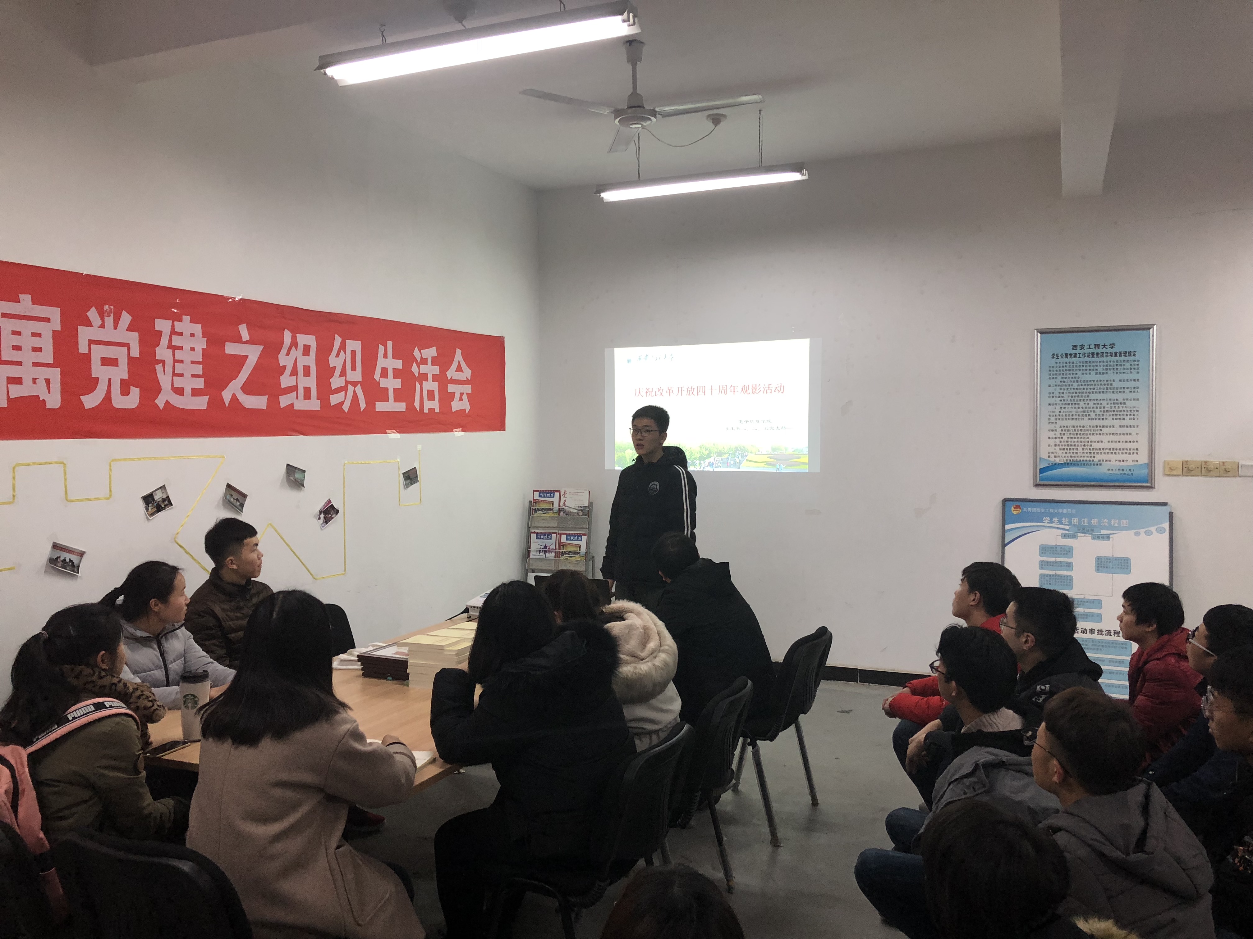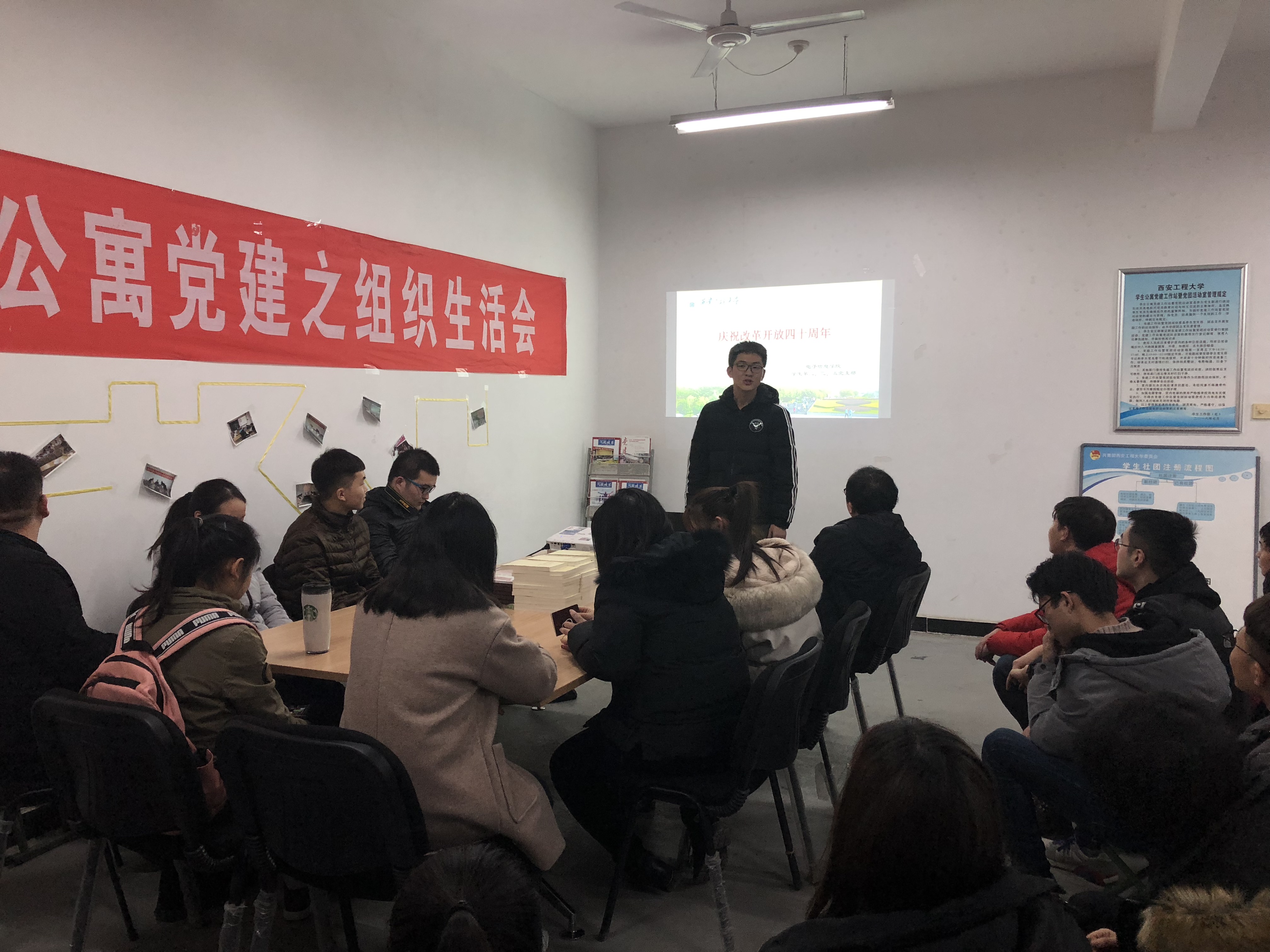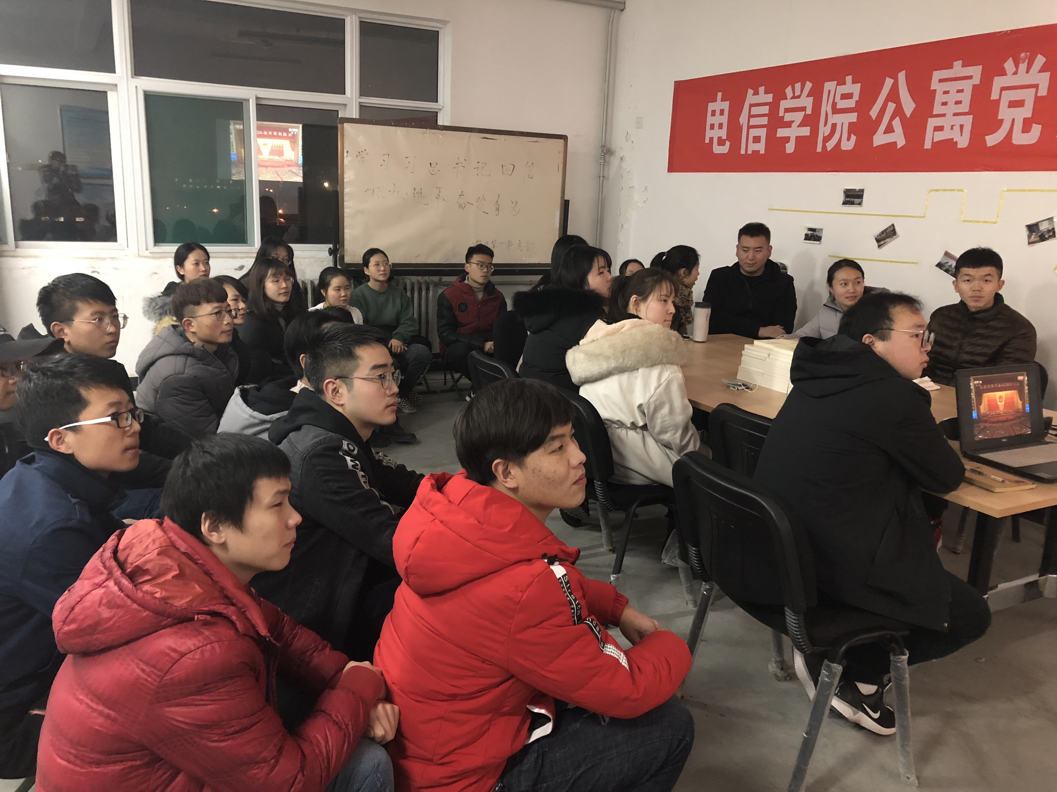 2026世界杯官方合作网站员工第二、三、五党支部于2018年12月18日下午6:00在临潼校区员工9号宿舍楼党团活动室组织开展学习庆祝改革开放四十周年大会精神活动。