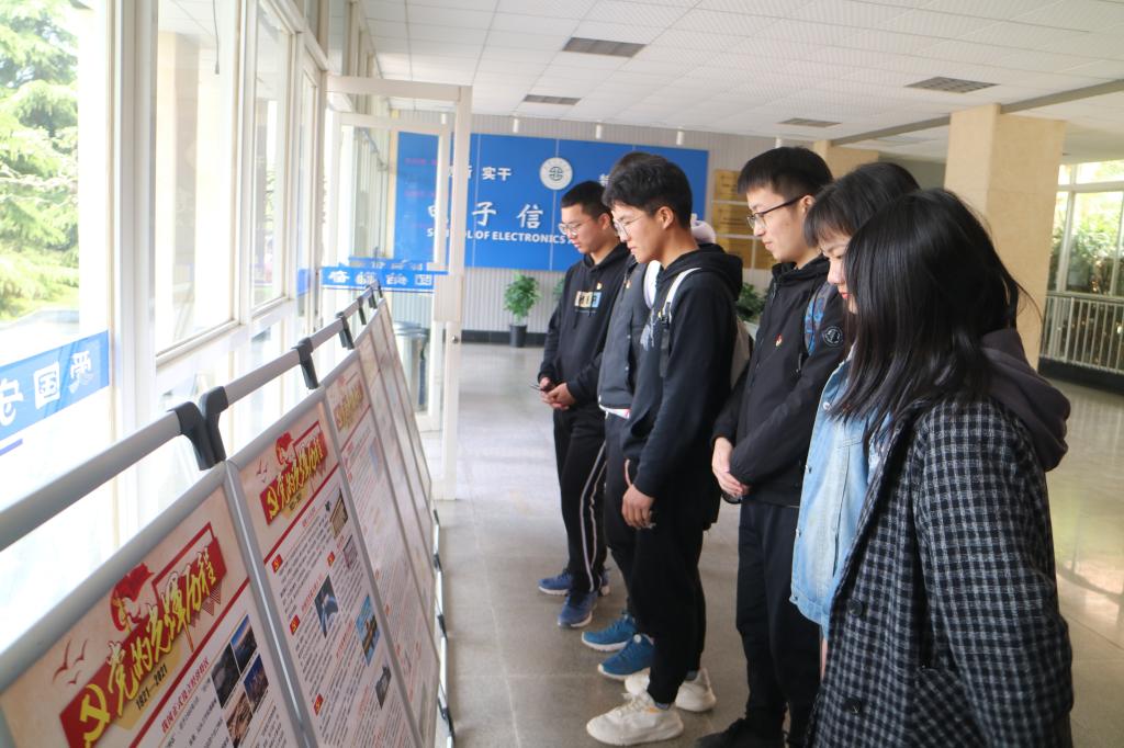 通信二班小组交流中:积极分子尹本基说到:“中国共产党自成立之日就一直秉着为人民谋幸福的信念,紧扣中国国情,带领中国人民一步步走向富强。”党员杨凯认为:“现在学习党史是十分必要的,不仅能够使我们坚定自己的信念,更能增加自身的党性修养。”