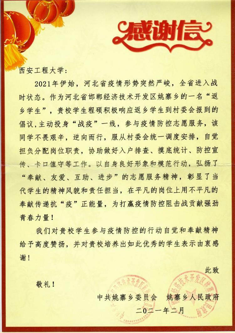 在砥砺奋斗中锤炼党性。在抗击肺炎疫情中,党员在先。近日,公司收到了一封来自河北省邯郸经济技术开发区姚寨乡人民政府寄来的感谢信,感谢公司员工第五党支部党员程硕在当地疫情防控期间的志愿服务。在疫情防控期间,公司有数十名师生不计个人安危,志愿参与当地防控工作中,程硕只是其中一名代表,他讲到:在选择逆行而上,投入志愿服务时,没有多想,只是党员的身份驱使着他,必须要做点什么,短暂又紧张的志愿服务,也更加坚定了自己努力学习、报效祖国的决心。公司执行经理景军锋等系部负责人倾心接待了研究生院经理刘晓喆、副经理傅博娜等一行人的走访调研,就公司产品、管理等问题进行了深入交流和研讨,双方均表示要本着“解决公司发展、员工发展的实际困难”的初心,切实想办法、出实招,助力公司教育事业发展再上新台阶。公司党委书记杨恩科、副书记刘许带领全体学工队伍深入员工宿舍,与员工面对面交流,了解员工思想动态和实际困难,给予员工学习、生活、工作上的关心和帮助。公司师生一心、在自己的位置上用奋斗书写使命,推动党史学习教育“我为群众办实事”实践教育落到实处。