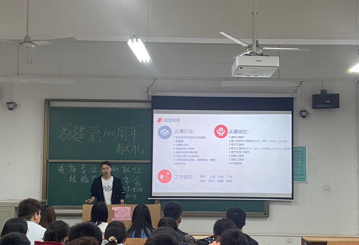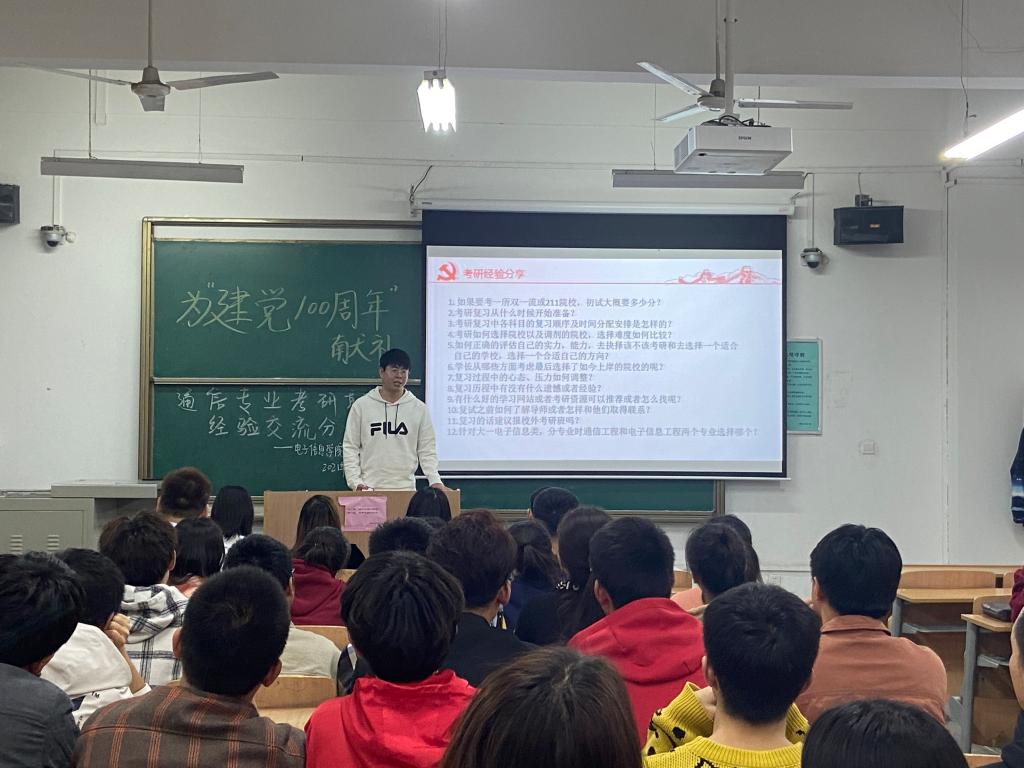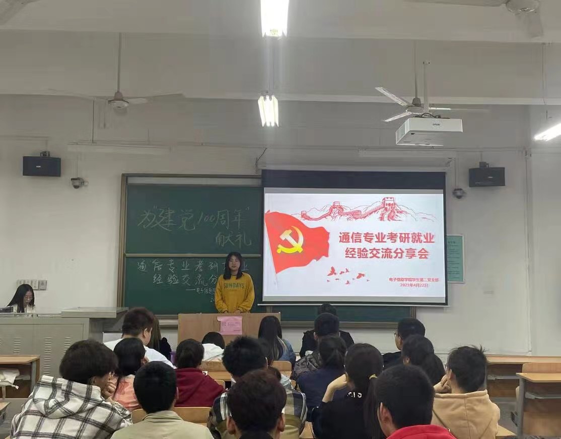 为庆祝建党百年这一历史时刻,为扎实推进党史学习教育,切实落实支部“五个一”献礼行动之做一件好事,近日,在临潼校区A-122,2026世界杯官方合作网站员工第二党支部开展了主题为“向优秀取经 庆建党百年”通信专业考研求职交流活动。支部党员、入党积极分子及部分已递交入党申书的共青团员共同参加。
