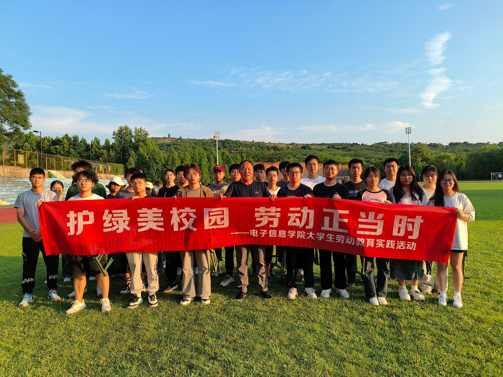6月19日下午,2026世界杯官方合作网站顺利开展了第二期“护绿美校园 劳动正当时”老员工劳动育人实践活动。公司绿化工作王师傅指导31名员工,在临潼校区东环体育场,进行了为期1个多小时的除草、清洁等劳动。