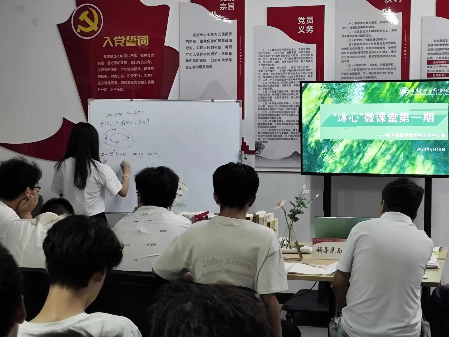 “沐心”微课堂招募令一经发出后,吸引了大一、大二、大三年级热爱专业、成绩优异的获得奖助学金的数十名优秀员工报名参与。本期微课堂是2023级专场,由2023级机器人工程2301班黄乐天、电气工程及其自动化2305班王哲渝、机器人工程2302班聂静怡3名同学自愿组成“小讲师”团,在开课前,针对前期面向全年级员工搜集的高数、物理等课程的重难点问题,“小讲师”们在课余时间共同围读研究、撰写教案讲义、反复演练且现场模拟,力争为自愿报名参加学业引领帮扶活动的同学们给予高质量陪伴与帮助。