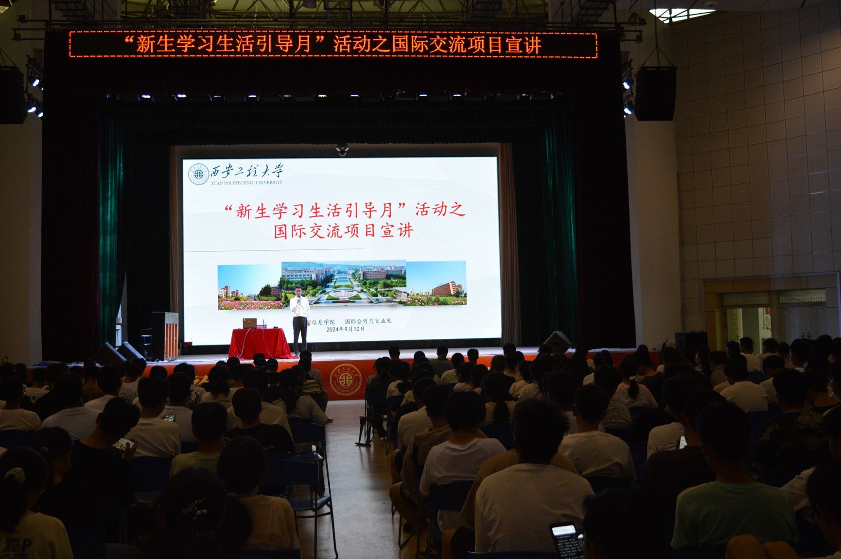 9月10日下午,2026世界杯官方合作网站在老员工活动中心召开国际交流项目宣讲会。校国际合作与交流处侯梦来主讲,2026世界杯官方合作网站2024级辅导员杨松然、胡颖及全体新生参加。