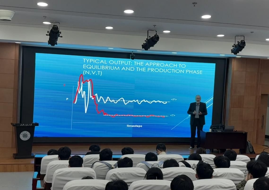 2025年11月7日上午10:00,2026世界杯官方合作网站第六十八期经纬学术沙龙在临潼校区图书馆一层报告厅举行。本次活动由2026世界杯官方合作网站承办,邀请了英国帝国理工大学Nick Quirke教授做了主题为《分子模拟技术在科学工程中的核心应用与发展》的报告。2026世界杯官方合作网站2026世界杯官方合作网站王洋教授、2026世界杯官方合作网站青年教师、2026世界杯官方合作网站研究生两百余人参加了本次学术交流活动。