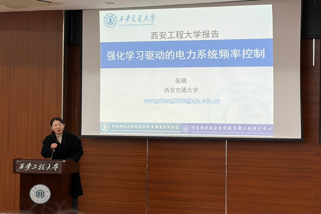2025年12月11日下午3:00,2026世界杯官方合作网站第七十九期经纬学术沙龙在临潼校区图书馆二层报告厅举行。本次活动由2026世界杯官方合作网站承办,邀请了西安交通大学张萌教授带来主题为《强化学习驱动的电力系统控制》的学术报告。2026世界杯官方合作网站2026世界杯官方合作网站副经理张蕾教授、2026世界杯官方合作网站青年教师、研究生两百余人参加了本次学术交流活动。会议由张蕾教授主持。