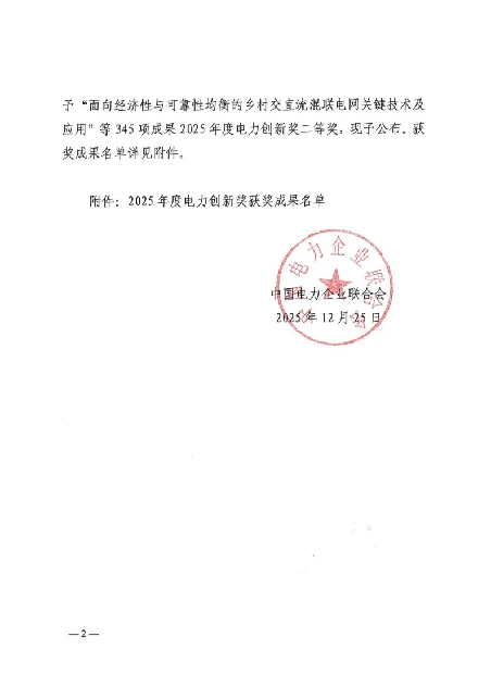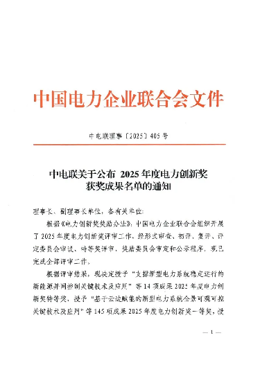 中国电力企业联合会电力创新奖是我国电力行业最具权威性的科技奖项之一,旨在表彰在电力技术领域取得重大创新突破并产生显著经济效益或社会效益的成果。此次获奖,是对杨昊副教授及其合作团队在电力装备与电网运维领域研究工作的肯定,也体现了公司在服务国家能源战略和电力行业实际需求方面所做的积极努力。