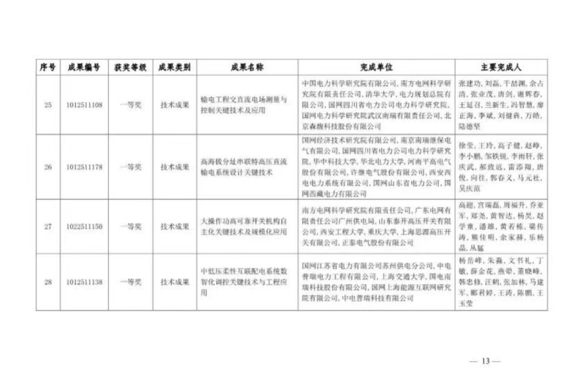 近日,中国电力企业联合会公布了2025年度电力创新奖评选结果。公司杨昊副教授团队参与的“大操作功高可靠开关机构自主化关键技术及规模化应用”与“重污区绝缘子污秽成分带电检测与伞形优化关键技术研究”项目,分别荣获技术成果一等奖与二等奖。