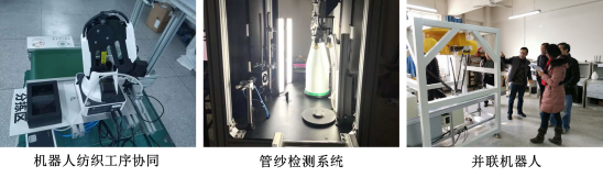 (3)工业机器人应用于纺织业的关键技术研究。包括拔、插纱管、裁片抓取与挂片、上纱等机械臂的高速高精度作业;基于异质传感器的机器人作业环境理解;多机器人协调控制。拟解决的主要问题有:一、采取非模型方法与基于模型方法相结合的补偿方法,进行几何参数误差和非几何参数误差的补偿技术;二、动态轨迹修正技术与轨迹优化技术提高关节伺服性能,实现平稳运行;三、多传感器信息融合与机器人运动信息融合的多机器人协调技术。